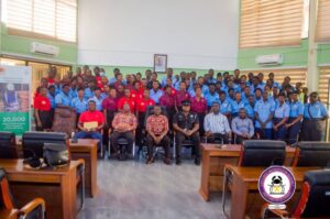 Yesterday, the Cape Coast Metropolitan Assembly Hall was filled with renewed energy and commitment as Hon. George Justice Arthur, Mayor of Cape Coast, engaged with all newly deployed Community Police Assistants and Fire Assistants under the Youth Employment Agency (YEA).