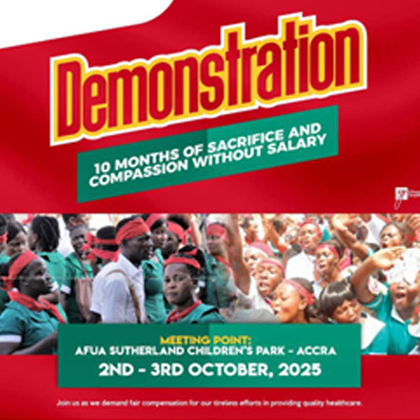 The Coalition of Unpaid Nurses and Midwives in Ghana is calling on all members to participate in a significant demonstration scheduled for October 2nd and 3rd, 2025, at the Afua Sutherland Children’s Park in Accra. This event aims to unite healthcare professionals in a collective demand for fair compensation and recognition of their dedicated service to the nation.