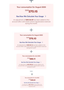 Consumers report a disturbing pattern of billing inconsistencies. A household may, for instance, receive an August bill of 300 GHS, only for ECG to later dismiss it as inaccurate. Without explanation, a much higher “adjusted” bill is then issued. These adjustments, which occur every three months, have left residents confused, overburdened, and questioning the integrity of ECG’s billing system.