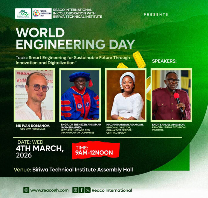 He made the call while delivering a keynote address during the 2026 World Engineering Day celebration held at the assembly hall of Biriwa Technical Institute under the theme “Smart Engineering for Sustainable Future Through Innovation and Digitalization.”