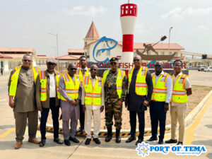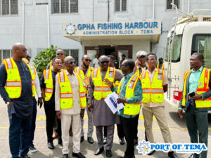 Tema Fishing Harbour: The team inspected the GPHA Health Post and broader dockside activities.