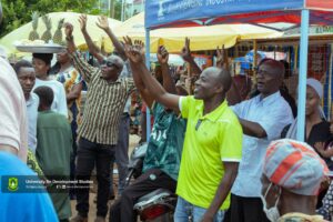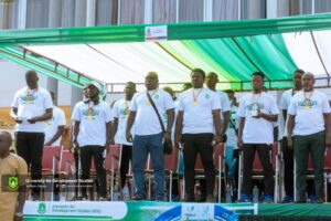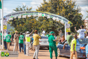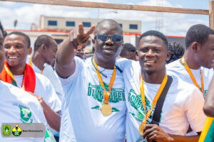 Led by the Vice-Chancellor, Registrar, and Alumni President, the ecstatic crowd waved flags, sang victory chants, and proudly displayed the world championship trophy that had placed Ghana on the global university football map.