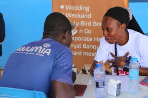 Screening services provided on-site included breast examinations, blood pressure checks, blood sugar testing, and malaria screening. Music and community engagement activities were held to encourage participation and create an interactive atmosphere.