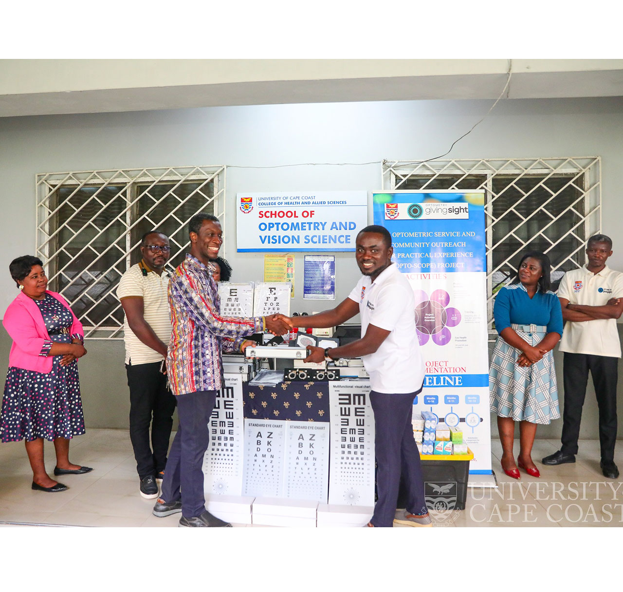 The University of Cape Coast is strengthening practical eye care training and community outreach as its School of Optometry and Vision Science receives essential equipment valued at $11,000 under the Optometric Service and Community Outreach for Practical Experience (OPTO-SCOPE) project.
